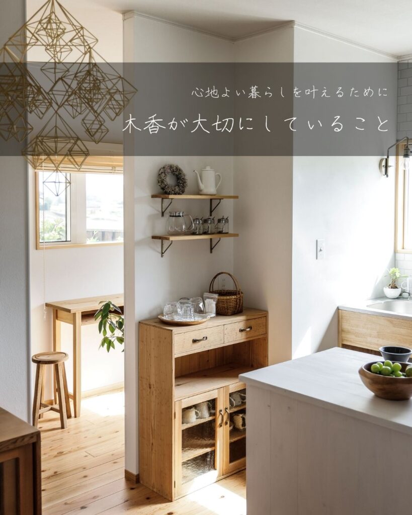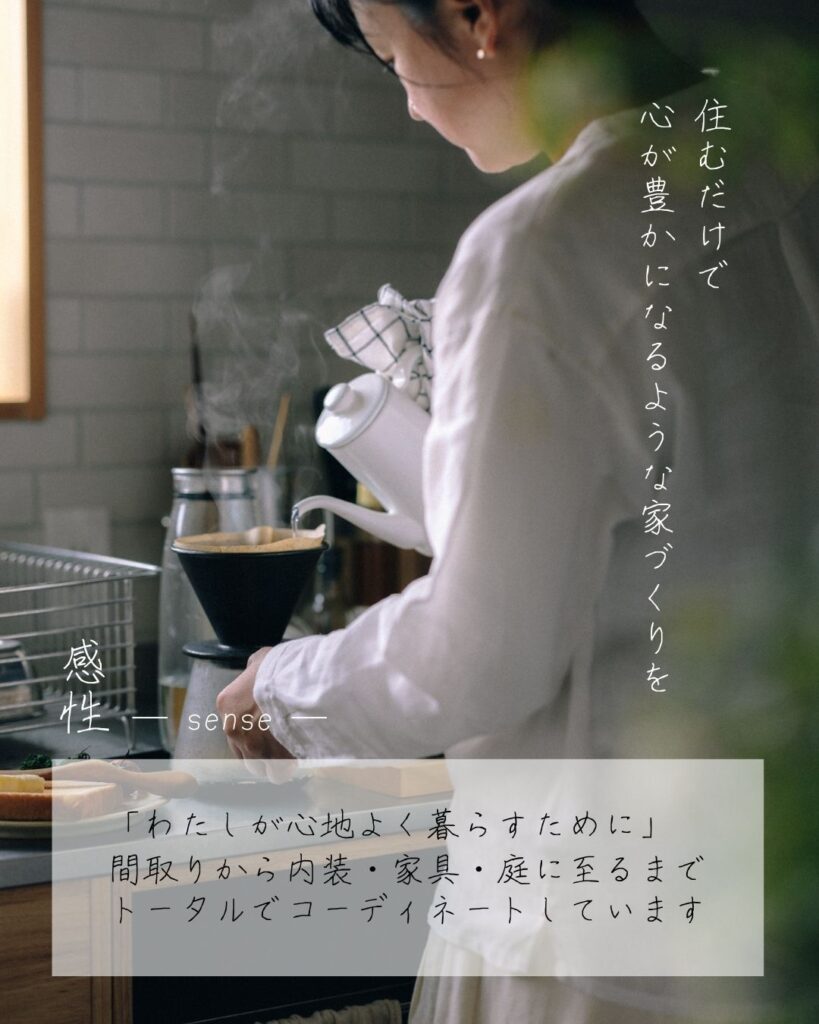 技術と感性で住まいと暮らしをつくる「ゆらぎの家/mocca house」では、暮らしの中に癒しや心地よさを感じる”自然界のゆらぎ”をとりいれる工夫をしています。